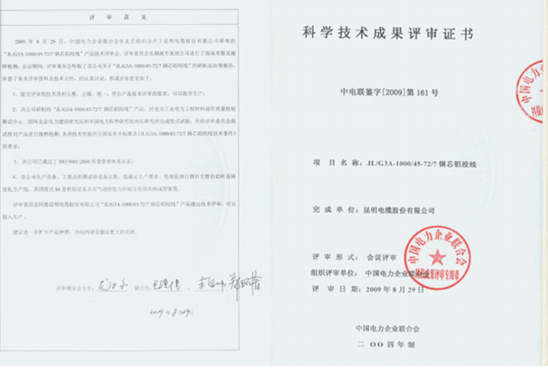 7、2008年8月首批研制成功國家電網(wǎng)錦屏一蘇南±800kv特高壓直流輸電工程用900mm2鋼芯鋁絞線。